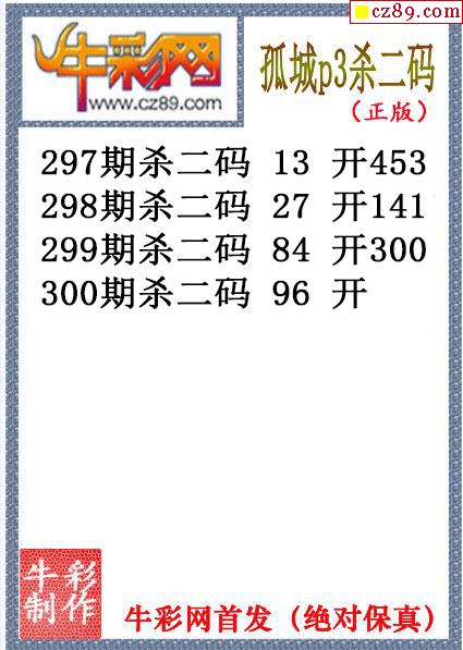 > 孤城杀码300期体彩P3图谜(原创)