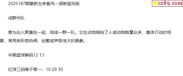 首页 > 双色球图谜 > 25年福彩双色球147期 左岸春风一语断蓝另版